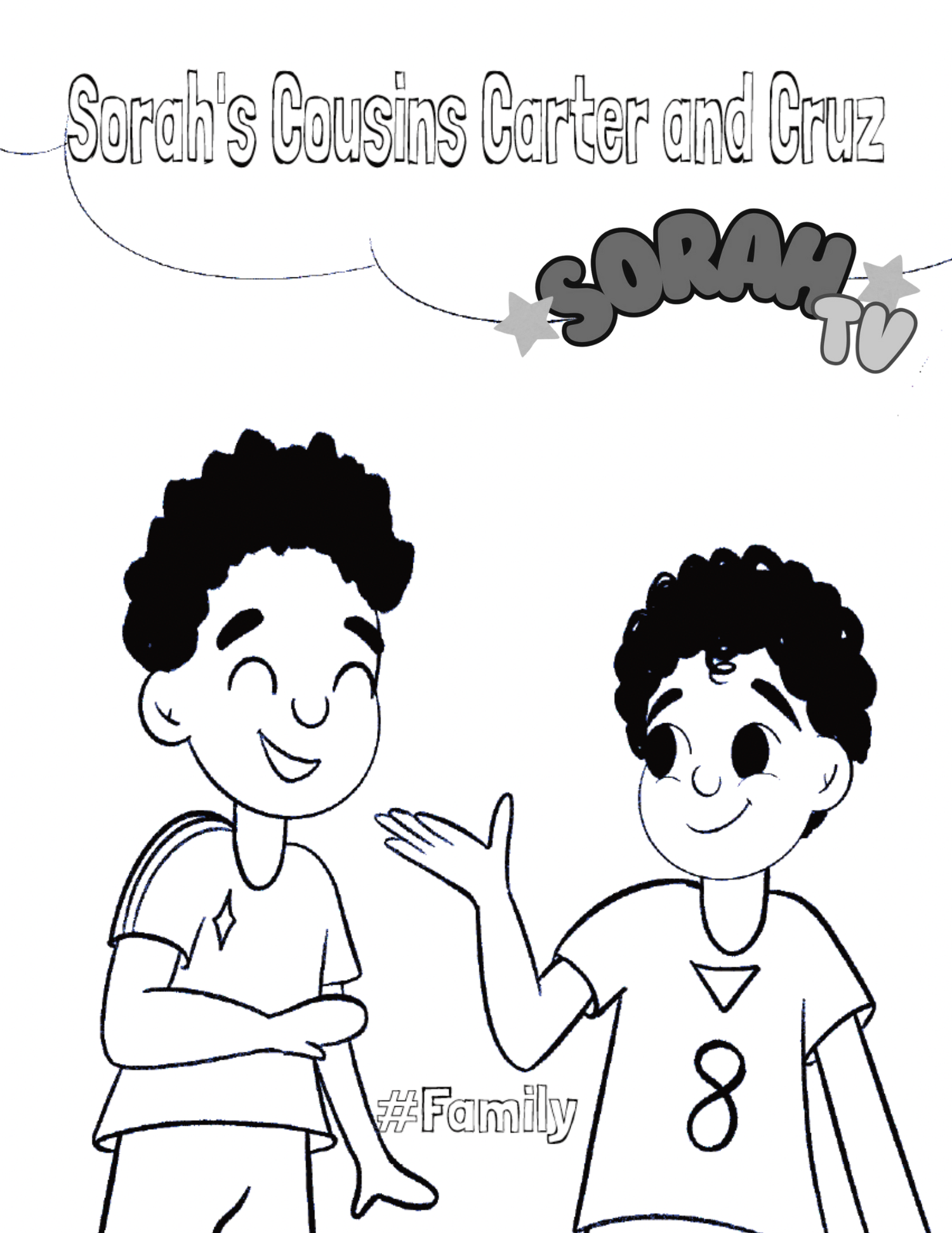 Color Carter and Cruz! Sorah’s cousins are full of energy, imagination, and big-hearted fun. Download their coloring page below!